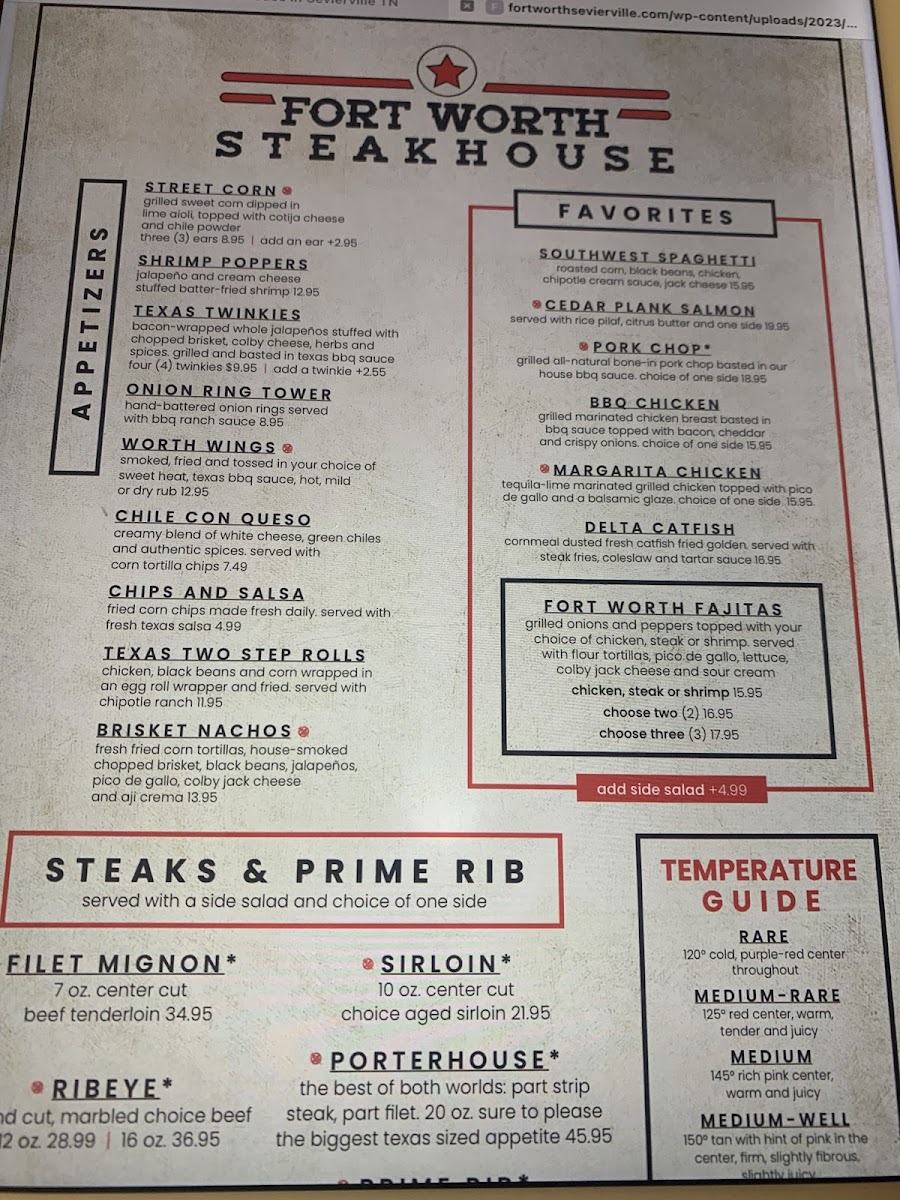 Welcome to the Fort Worth Steakhouse, located at 1560 Parkway in Sevierville, TN, a cherished gem for steak lovers and BBQ enthusiasts alike. This inviting establishment promises a culinary adventure steeped in Southern charm and rustic elegance.