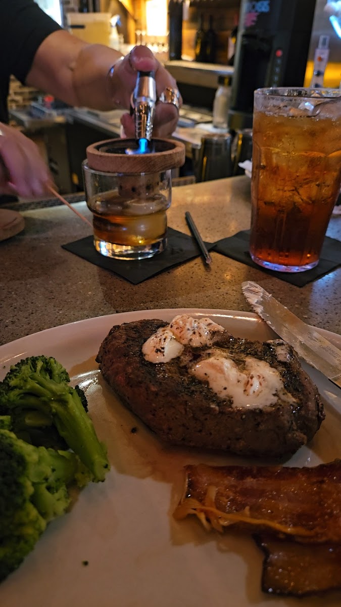 As you step inside, you'll be captivated by the warm, western-inspired decor, creating the perfect backdrop for a hearty meal. The atmosphere strikes a beautiful balance between casual and upscale, making it an ideal spot for everything from a laid-back lunch with friends to a special dinner with family.